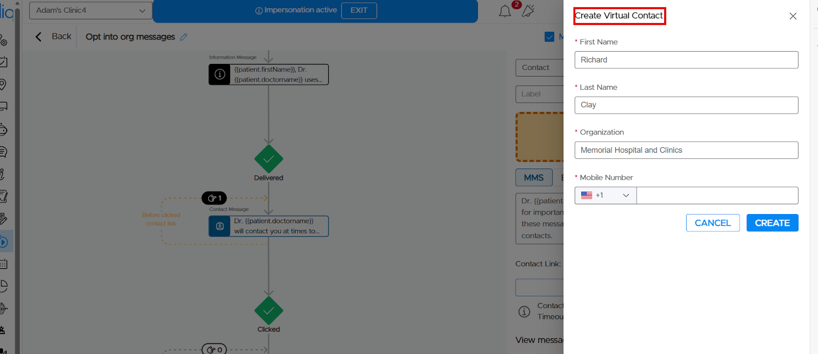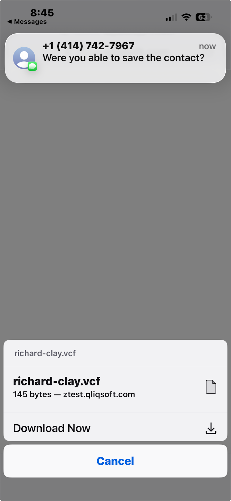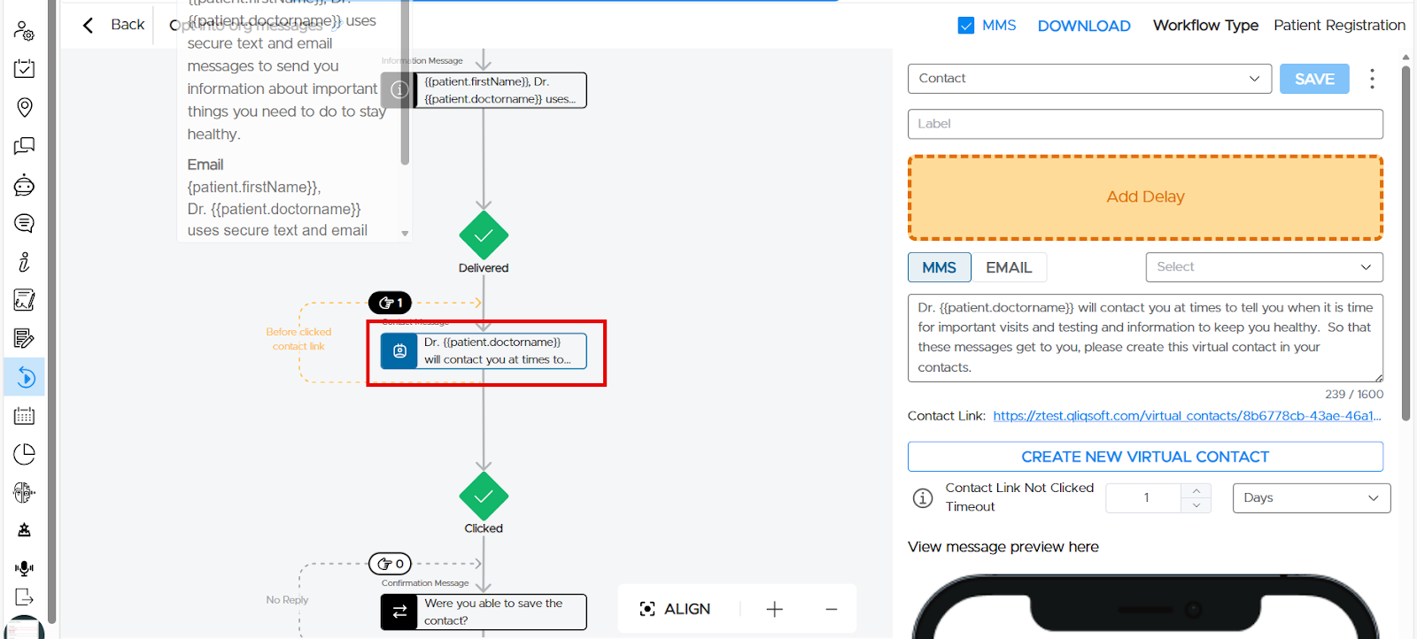 The contact URL will display under the message.