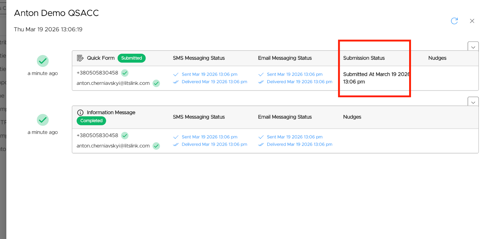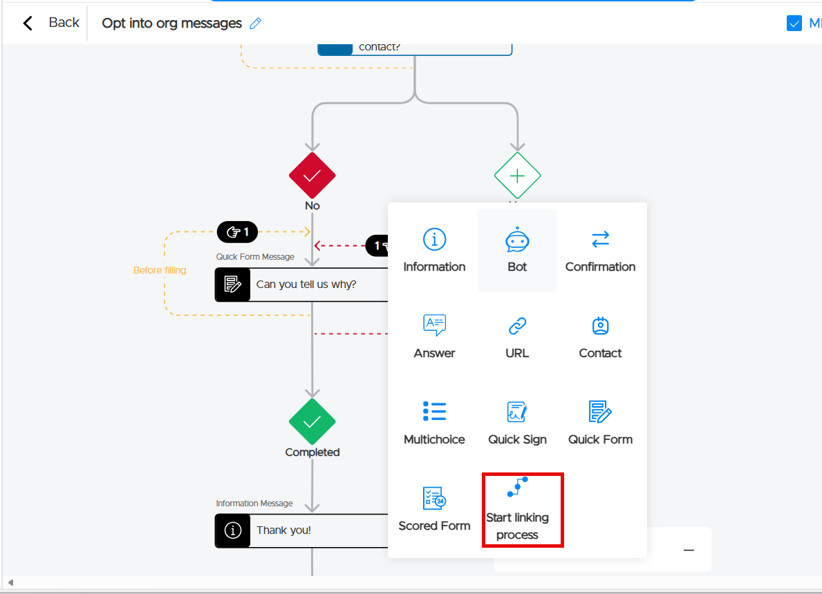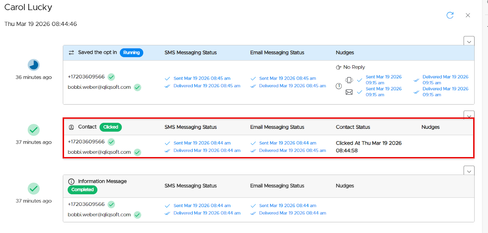 The contact URL will display under the message.